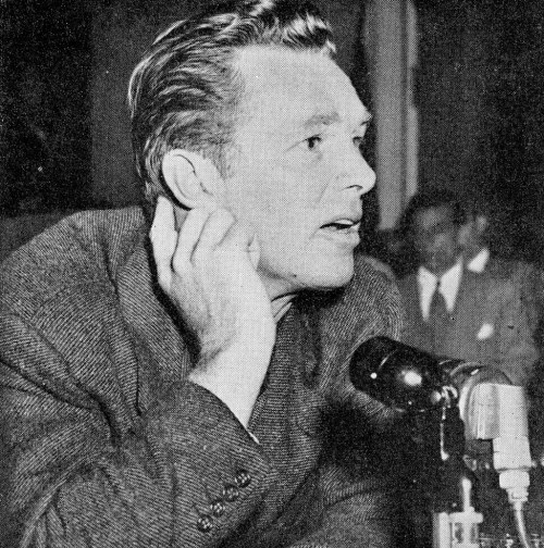 Sterling Hayden testifying before the Un-American Activities Committee. Joining the Communist Party, he said, “was the stupidest, most ignorant thing I’ve ever done in my life.”
