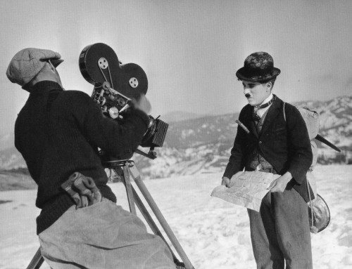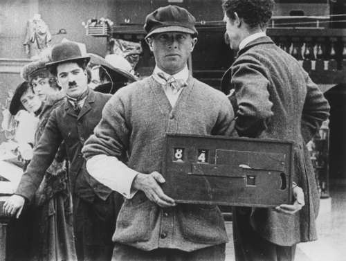 Rollie Totheroh, Chaplin‘s cameraman, marks the slate on The Floorwalker. 1916.