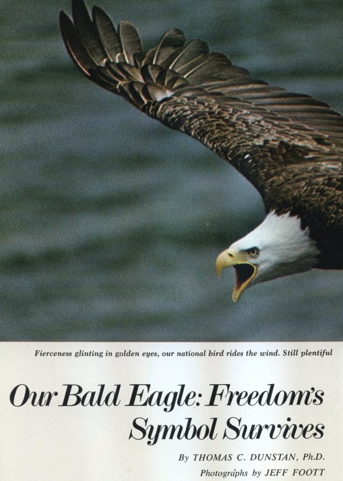 Above, a detail of the insert included in the LP. Below, another page from a National Geographic article on eagles.