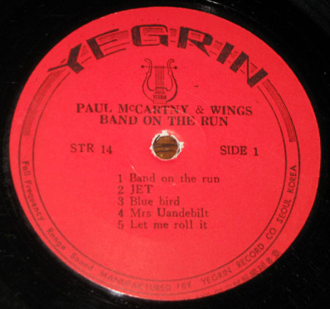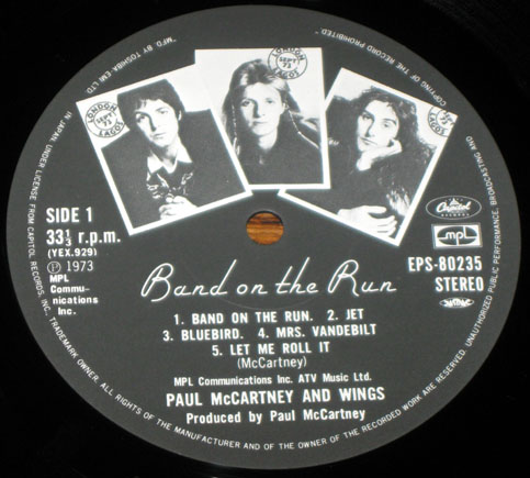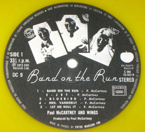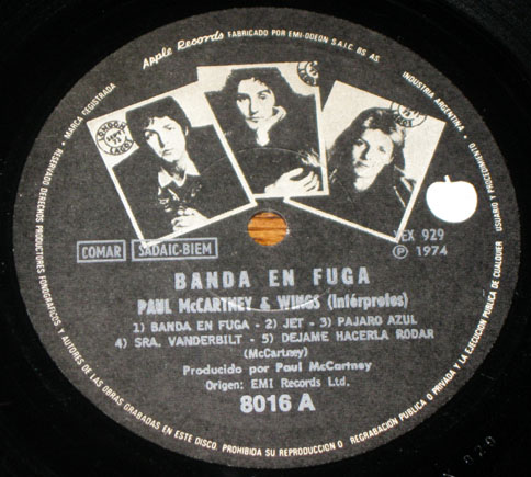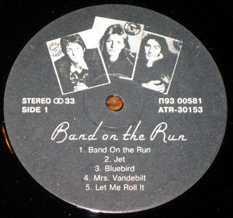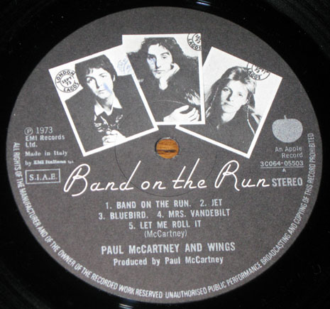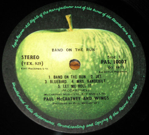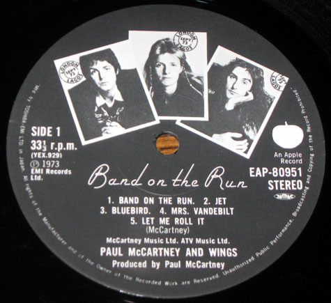 An ebay seller has recently been listing his collection of Wings‘ Band on the Run LPs from around the world. The poor guy must have fallen on hard times needing to part with gems like these. But his Wings-related loss is our relative gain as his excellent auction listings include photos of the labels on the records giving us a glimpse at global variations. So exciting stuff then. Above is an Italian Apple from 1973.