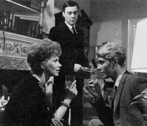 (Jean-Pierre Léaud, Jacqueline Bisset and) François Truffaut with hearing aid (in La Nuit Américaine. Truffaut. 1973.)