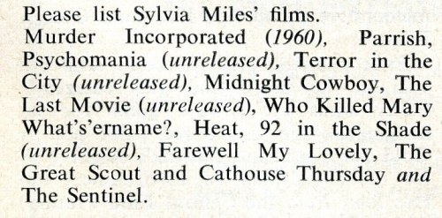 Beverly D’Angelo and Sylvia Miles on set of The Sentinel. Michael Winner. 1977.