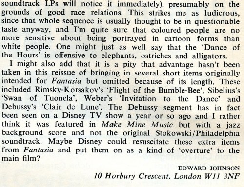 I’m sure would no more quarrel with him on any point of fact regarding Fantasia and its soundtrack, than I would you regarding (say) The Beatles.