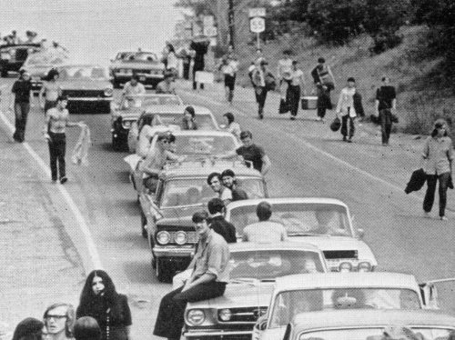Far out movie-making headband in place, Michael Wadleigh is prepared to direct a cast of thousands. Woodstock. 1970.