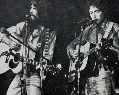 George Harrison and Bob Dylan in The Concert for Bangladesh. Saul Swimmer. 1972.