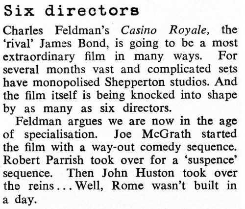 This is the first of a new series on Casino Royale. The series is really just an excuse to post images from a February 1967 Playboy pictorial which featured photos taken on the set of the film (some depicting scenes that didn’t appear in the finished film) and nearly all of the film’s actresses in various stages of undress. It should be pretty groovy so stay tuned.