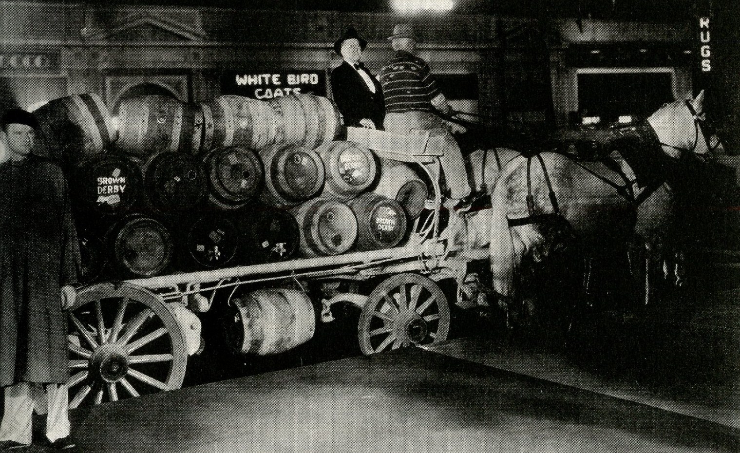 Claude poses for a publicity shot to commemorate the repeal of the Eighteenth Amendment to the United States Constitution. 1933.