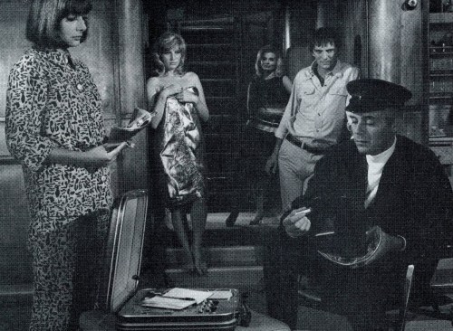 “Rossella Falk, Monica Vitti, Terence Stamp and Dirk Bogarde”