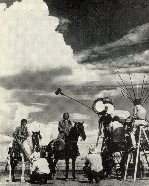 Cast and crew on the set of Little Big Man. Arthur Penn. 1970.